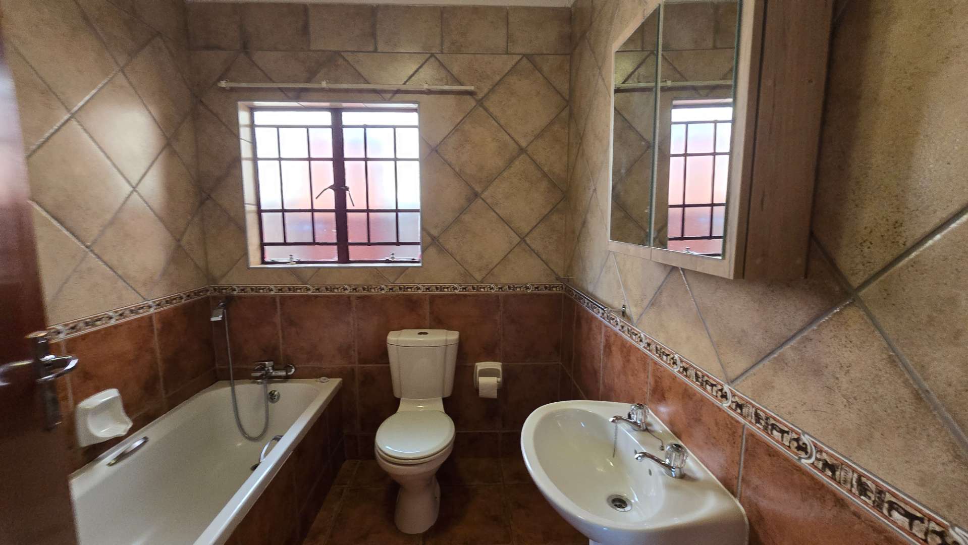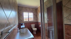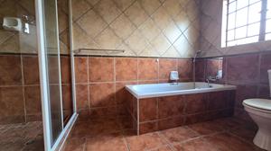 The spacious home boasts three generously sized bedrooms, each equipped with abundant built-in cupboards and fully tiled floors. The main bedroom includes an en-suite bathroom complete with a shower, basin, and toilet. A second bathroom offers a bathtub, basin, additional stylish cabinetry, and toilet for guests or family members. And do not forget the linen cupboard in the passage for all your linen necessities.