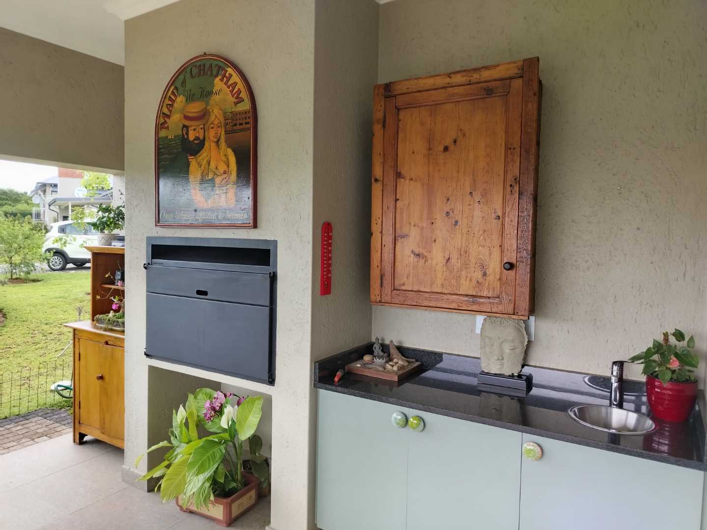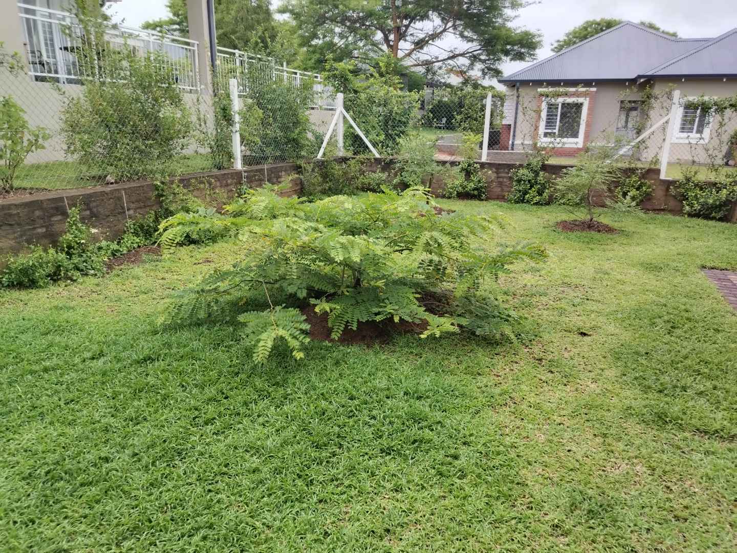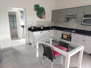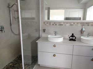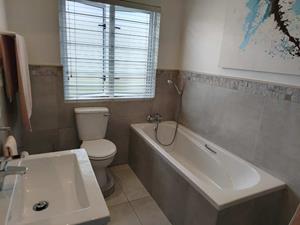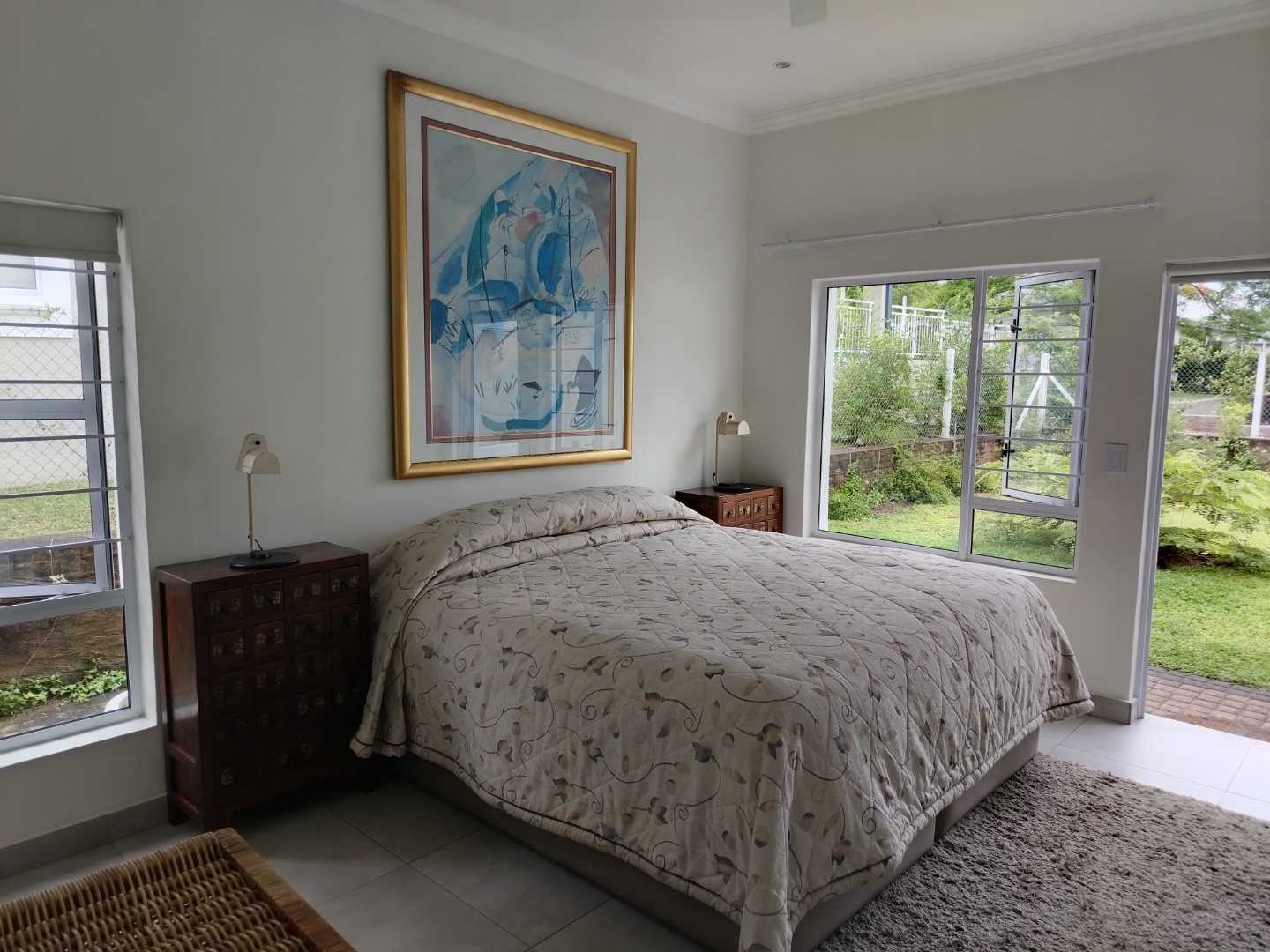 The house is surrounded by a beautifully developed garden and a large patio that covers two sides of the house with a built in braai. All three rooms have ample space and modern finishes, of which one can be used as an office. The flow of the house is very comfortable, with light streaming in through the large windows. The main bedroom has its own outside entrance. The double garage enter into the house.