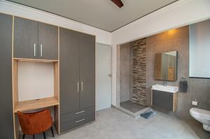 Upstairs, the home continues to impress with three generously sized bedrooms, each with its own bathroom, providing comfort and privacy for all residents. The main bedroom is a luxurious retreat featuring built-in cupboards, shelving, a dedicated dressing area, and a full ensuite bathroom .
