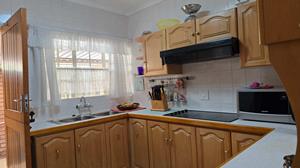 The kitchen is both beautiful and practical, with ample built-in cupboards, melamine countertops, and space for a single fridge and dishwasher. A small pantry provides additional storage. From the kitchen, you can access a separate "sun room," perfect for use as a storeroom or any other purpose you may have in mind.