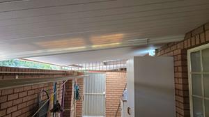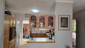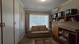 Parking is ample with one carport and an additional open space in front. The garage has been converted into a study with built-in cupboards and an open door leading to the lounge area. This modification was made using a drywall and can be easily reverted to its original use as a garage if needed. An inverter system with batteries are also in place to meet your electricity needs.