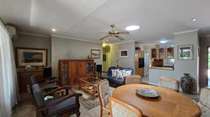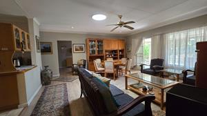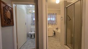 The house includes a wheelchair-friendly full bathroom with a bathtub, shower and basin, as well as a separate guest toilet for added convenience. The extra-spacious lounge area boasts laminated floors and has been extended to accommodate both a lounge suite and dining table. An air-conditioner as well as a ceiling fan ensure comfort on warm, sunny days.