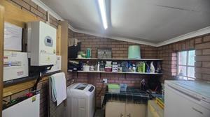 A dedicated laundry room supports your household needs, while an extra sunny room adjacent to the kitchen offers flexibility for various uses as desired by the owner. The house is equipped with a 5kWV inverter system with batteries and solar panels, promoting energy efficiency.