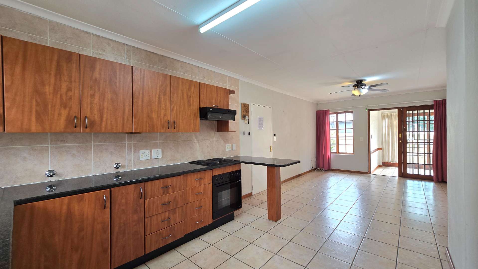 Step into this charming, fully tiled two-bedroom home, which offers ample built-in cupboards to accommodate all your storage needs. The full bathroom is thoughtfully designed with the comfort and safety of seniors in mind. You'll immediately feel at ease in the cozy open-plan lounge, which flows seamlessly into a well-appointed kitchen. Here, you'll find plenty of built-in cupboards and a breakfast nook, perfect for enjoying your daily meals and making life more convenient.