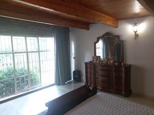 This residence offers five generously sized bedrooms. One wing of the home includes three spacious bedrooms, one of which boasts its own full en-suite bathroom, while the other two share a well-appointed family bathroom. The other wing features an impressive and expansive bedroom with a walk-in closet, bathroom, and living area. This section can easily be transformed into a flatlet for additional rental income.