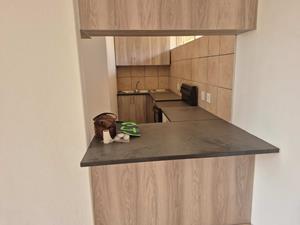 Kitchen with new built in cupboards.