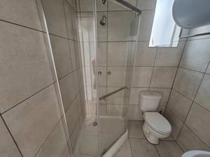 Bathroom that consist of shower,basin and toilet.