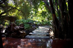 Nestled lower down the hill in lush Japanese-style gardens, Illyria Hideaway is a sanctuary of privacy and tranquility. This eastern elegance-style property, previously offering a Thai Spa experience, features seven ensuite rooms that blend seamlessly with nature's abundance. A private pool equipped with loungers complements the exceptional luxurious ambiance. The hideaway includes four garages and additional on-site parking for seven vehicles.
