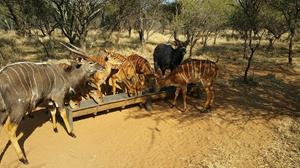 Diverse Game: Giraffes, zebras, blesbok, waterbuck, reedbuck, bushbuck, impalas, and ostriches.