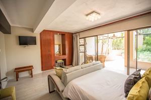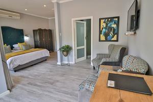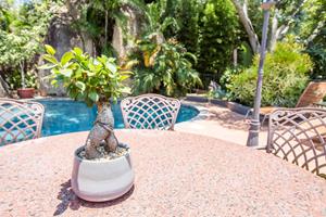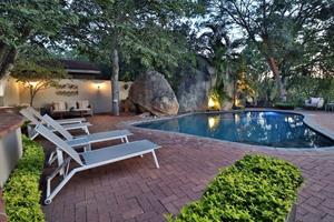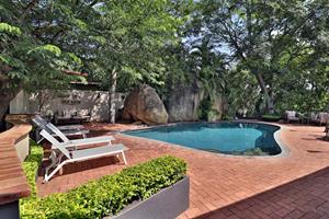 Take a dip in the large pool set among big granite boulders or simply relax in the beautifully established landscaped gardens with a communal guest braai area and fire pit, and a chill-out area in "the jungle". There is also secure on-site parking for 17 cars, including 2 double garages and 1 double carport for your convenience.