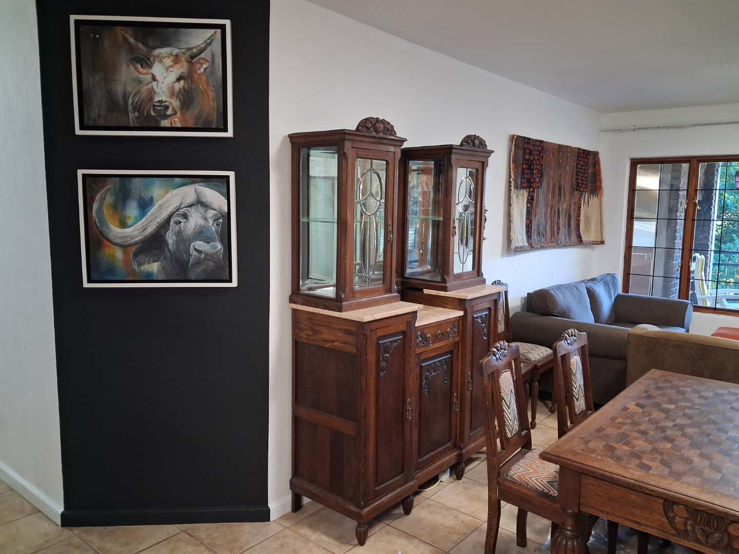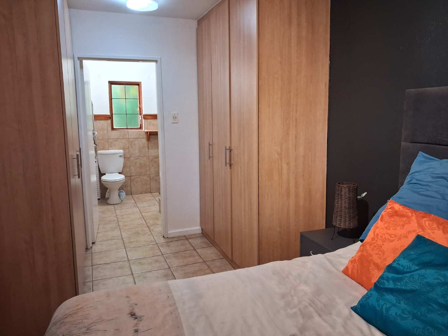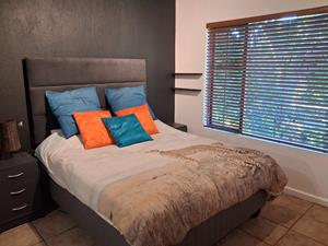 This three-bedroom, two-bathroom unit includes a versatile study. The home features breathtaking views of a lush lawn and a beautifully landscaped garden at the rear. Imagine relaxing on the spacious patio, equipped with a built-in braai, where you can enjoy the delightful visits from local wildlife, including mongoose and duikers.
