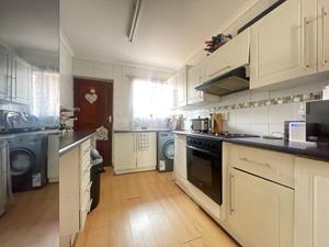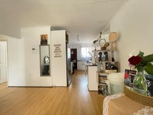 The heart of the home is the neat, open-plan kitchen that seamlessly flows into a spacious lounge area. This inviting space is ideal for entertaining guests or enjoying cozy family evenings. The kitchen extends to a small courtyard, complete with a washing line, ensuring convenience in your day-to-day living.