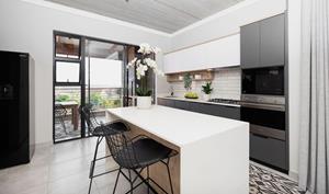 The gourmet kitchen stands as a masterpiece in itself, adorned with modern and luxurious finishes. Melamine cupboards and quartz countertops create an ambiance of refined elegance. This culinary haven is equipped with top-of-the-line appliances, including a 700mm SMEG gas hob, a 600mm SMEG oven classic, and a 900mm SMEG telescopic extractor fan. Further enhancing functionality are the pantry and scullery, complete with provisions for a dishwasher, tumble dryer, and washing machine.