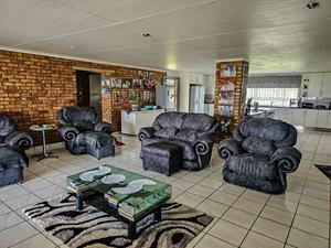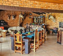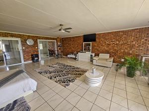 - Open-plan kitchen with gas stove, TV room, bar area, and built-in braai