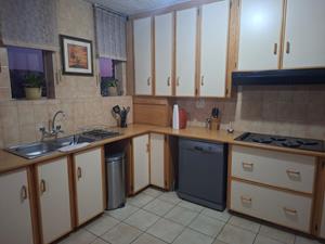 The well-appointed kitchen is a culinary enthusiast's dream, complete with ample cupboard space and equipped with a hob and stove, making meal preparation a breeze. Whether you're a seasoned chef or simply enjoy cooking at home, this kitchen is both functional and enjoyable.