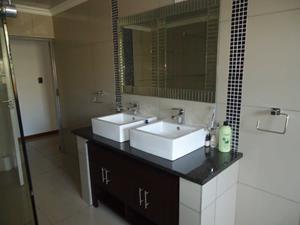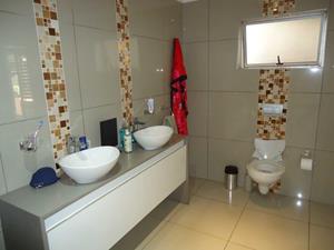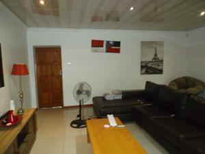 The spacious lounge area opens up to an inviting entertainment space, complete with a built-in braai, where you can host gatherings and enjoy leisurely weekends with friends and family.