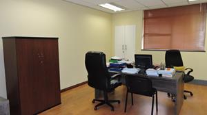 The suite includes essential facilities such as a kitchenette with ample cupboard space and a sink, as well as separate male and female toilets. A dedicated server room is equipped with a safe and IT server, along with its own air conditioning unit to ensure optimal equipment performance.