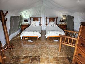 Accommodation: Four beautifully appointed safari tents, each sleeping two guests and featuring private bathrooms — blending rustic charm with modern comfort.
