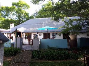 The property features a spacious living area with a large entrance hall, a cozy lounge with a Dover wood-burning stove, an expansive kitchen with a walk-in pantry and scullery, and a welcoming dining room. The main bedroom offers a walk-in dressing closet, linen and storage room, and a sunroom/study. A generous 19-meter verandah on two sides is perfect for entertaining guests with its built-in braai.