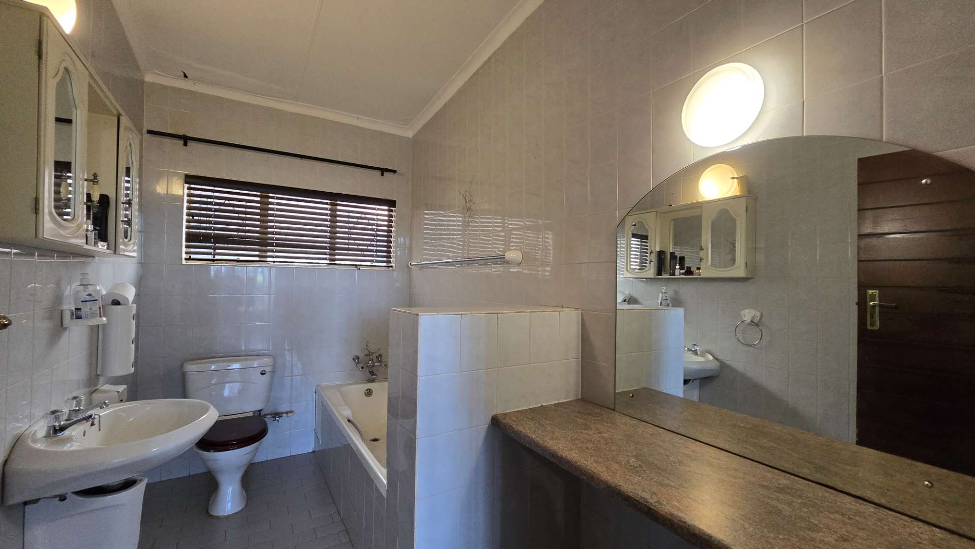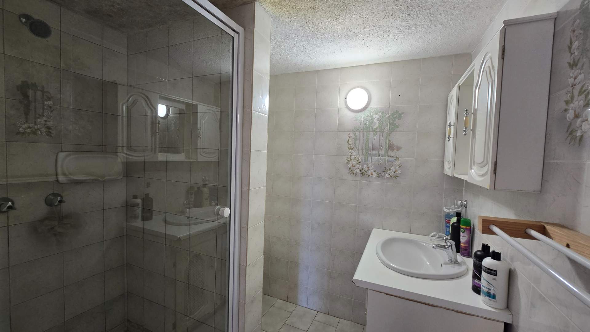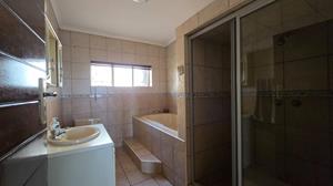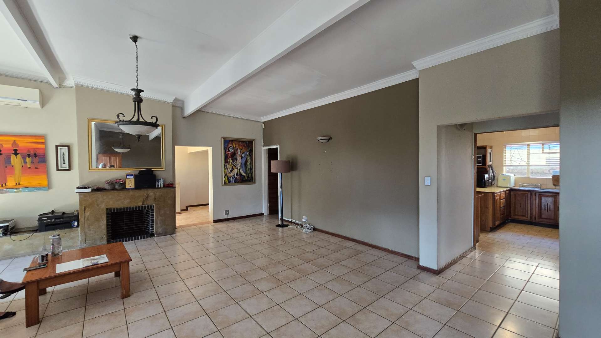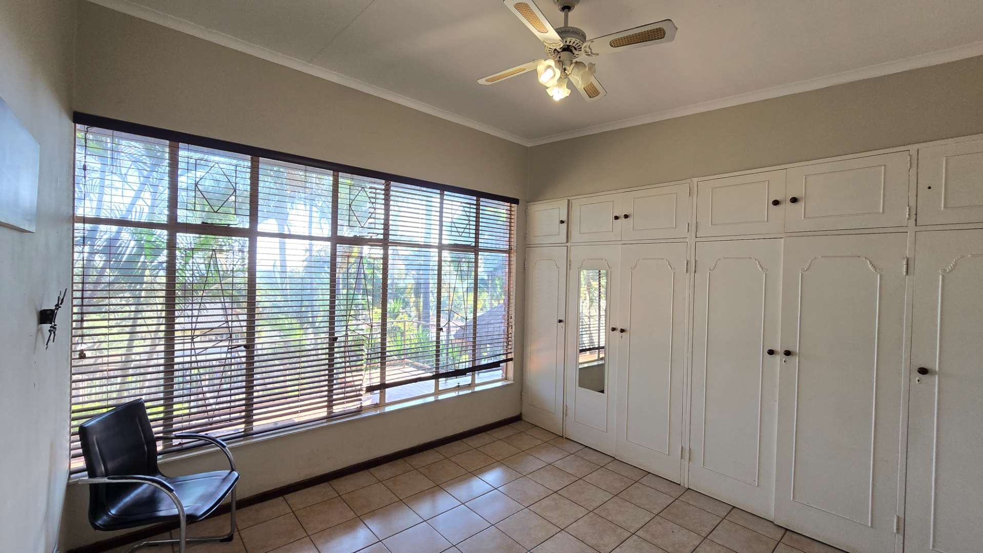 The well-appointed kitchen is equipped with ample wooden built-in cupboards, a breakfast nook, and a large pantry. It offers plenty of space to accommodate all your appliances and washing needs. The home features three spacious, fully-tiled bedrooms with generous cupboard space, two of which are north-facing. There are two full, modern bathrooms, one of which is an en-suite to the main bedroom. For added comfort, air conditioners are installed in both the lounge and main bedroom.