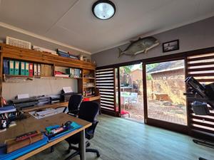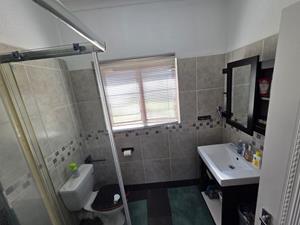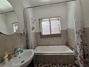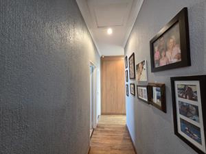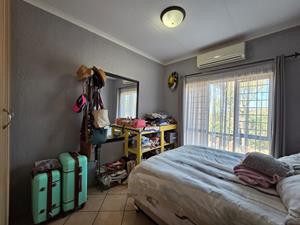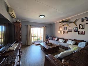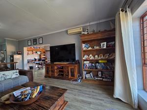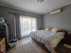 The home boasts three generously sized bedrooms, each designed with built-in cupboards. The main bedroom offers a serene private retreat with an en-suite bathroom featuring a shower and ample cupboard space. For added comfort, air-conditioning is installed in the living room and two of the bedrooms, ensuring a pleasant environment during the warmer months.