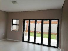 The open plan kitchen with extractor, under counter oven and a 4 plate gas hob, island breakfast nook. Sitting/living room leads out to stack-away glass doors that opens up to the garden and pergola with built in braai for those relaxing afternoons or entertaining during the weekends.