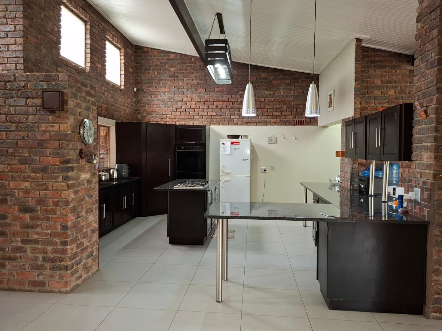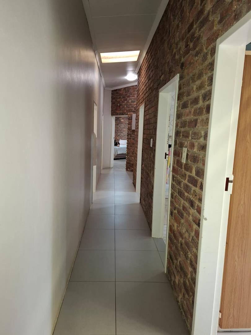 - Sliding doors open to a large covered patio with built-in braai, overlooking a sparkling fenced pool and well-kept garden — ideal for family gatherings.