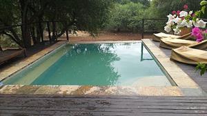 Recreational Spaces: Swimming pool, lounge, and viewing decks overlooking pristine bushveld landscapes.
