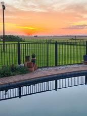 swimming pool ,kooi pond, patio, 2 lock up garages and very well-kept garden. The Work shop/Ware house is a hanger for helicopter - size 410 sq m.