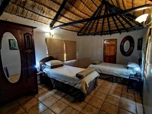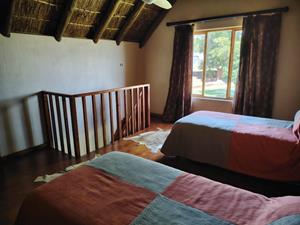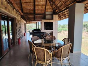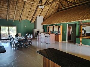 - 1 x Four-Bedroom Thatch House – Overlooks the river with garden, veranda, and braai area