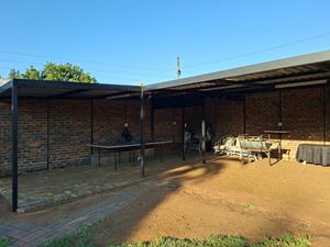 The property also includes three carports, which can be easily transformed into an entertainment area, featuring a Wendy house for additional storage or creative use.