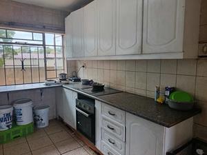 Upon entering through the kitchen side, you'll find a convenient washing area leading into a well-appointed kitchen. It features white melamine cupboards and a stove with views of the backyard, making meal preparation a delight. To the left, step into the expansive living room, enhanced by an extended back patio that seamlessly enlarges the living area. The entire townhouse is tiled throughout, offering easy maintenance and a modern look.