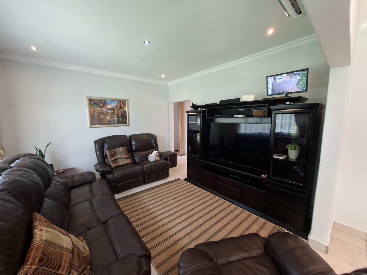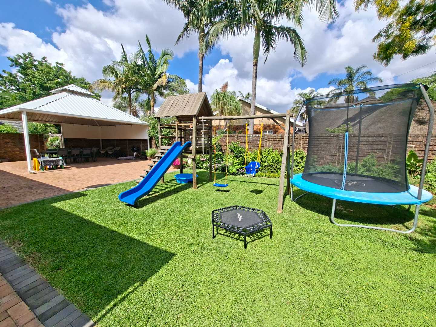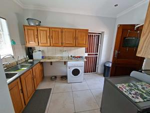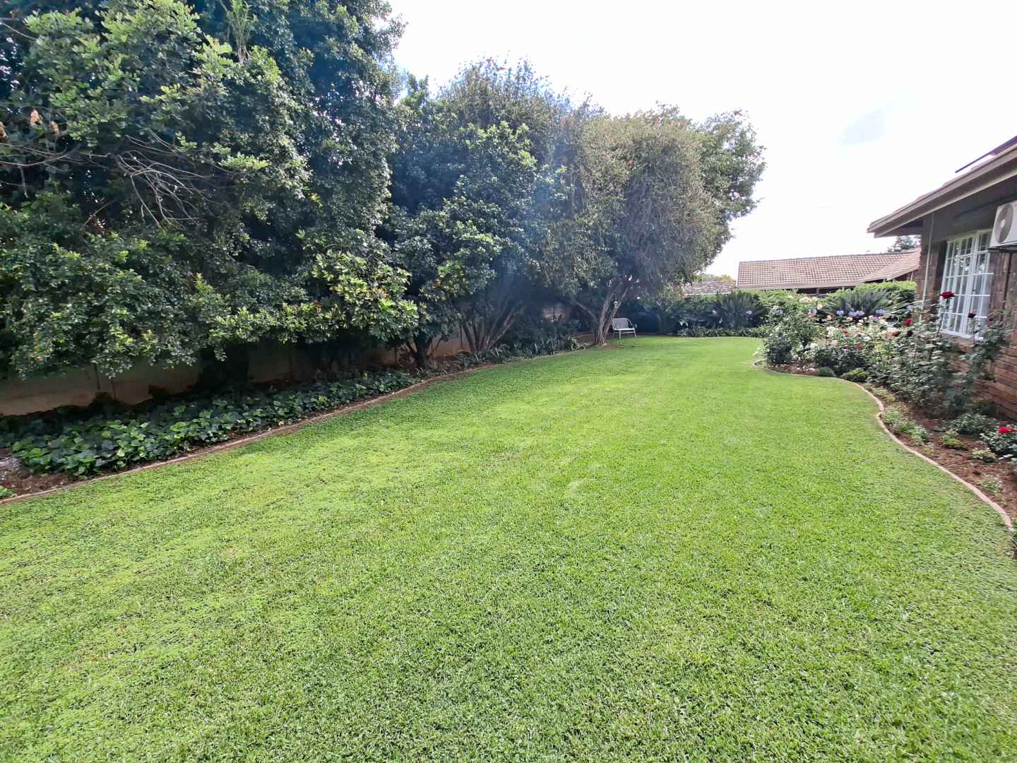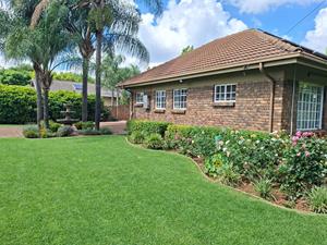 Enjoy cozy evenings in the lounge with a fireplace and tiled flooring or relax in the second tiled lounge. The open-plan dining area seamlessly connects to the kitchen, making it ideal for family gatherings or entertaining guests. The newly revamped kitchen features ample storage cupboards, granite countertop, a gas stove, an oven, and a convenient scullery.