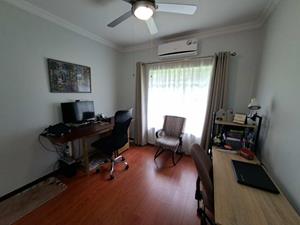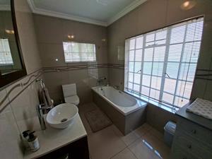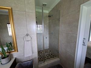 This charming property offers a perfect blend of comfort and style with its 3 spacious bedrooms, each featuring built-in cupboards and elegant laminated flooring. The master bedroom boasts an ensuite full bathroom, while the second bathroom is equipped with a bath, basin, toilet, and additional storage space.