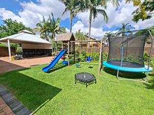 Parking is a breeze with a double garage, two carports, and additional open parking spaces. Outdoor living is equally impressive with an entertainment area and patio surrounded by a beautifully landscaped garden complete with a water feature, creating a serene setting for relaxation.