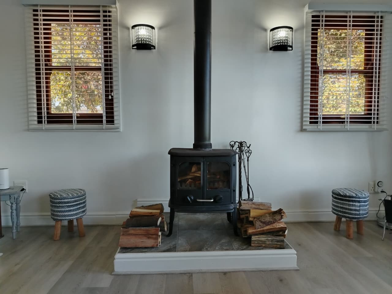 Inside, a spacious open-plan lounge and dining room welcomes you, complete with a cosy Mosso fireplace for winter evenings, and for the summer, stacking doors open onto the deck, creating seamless inside–outside living. With a backdrop this spectacular, you’ll hardly miss having a TV.