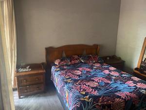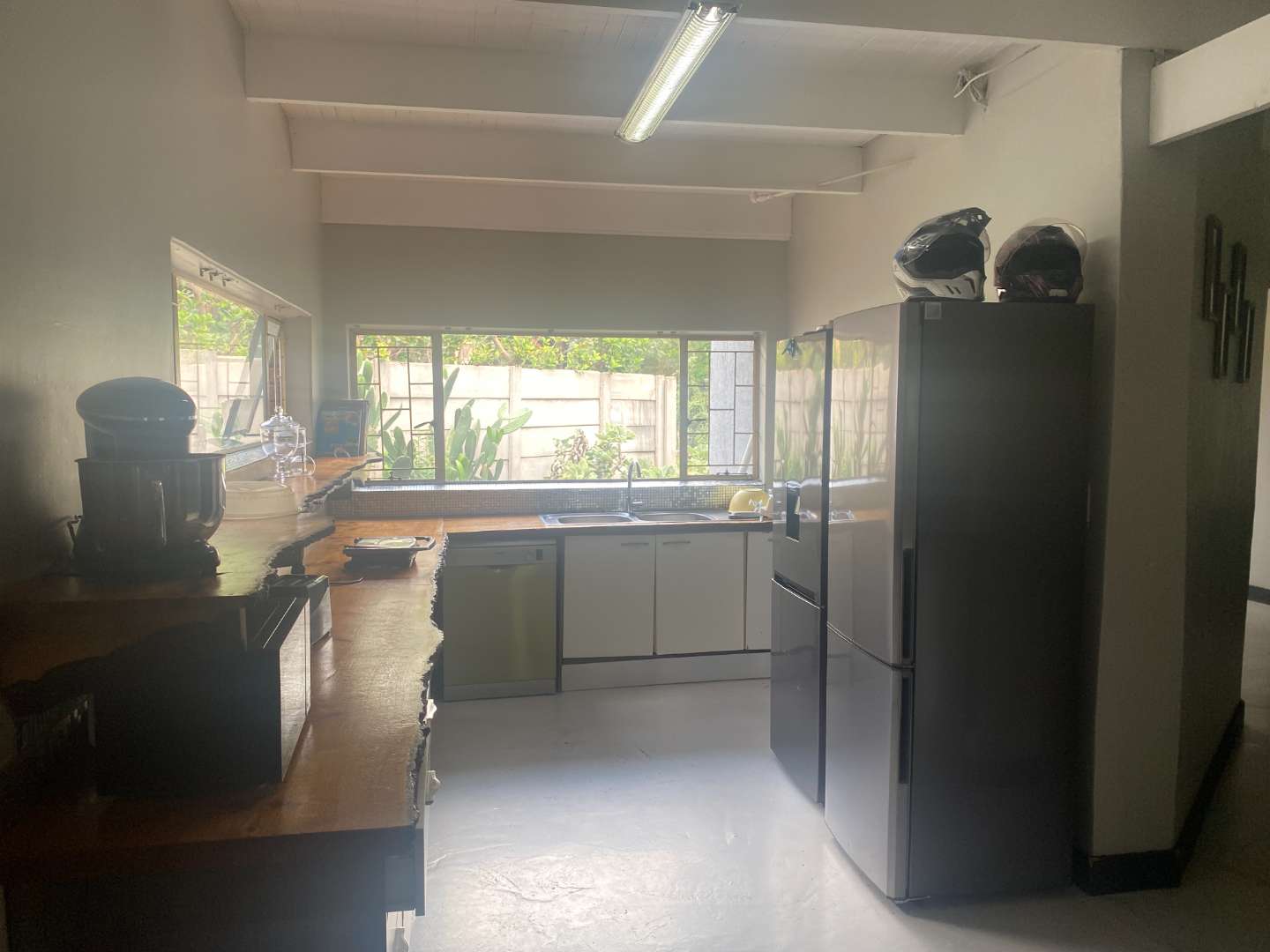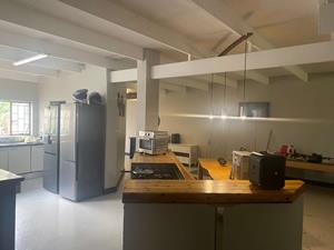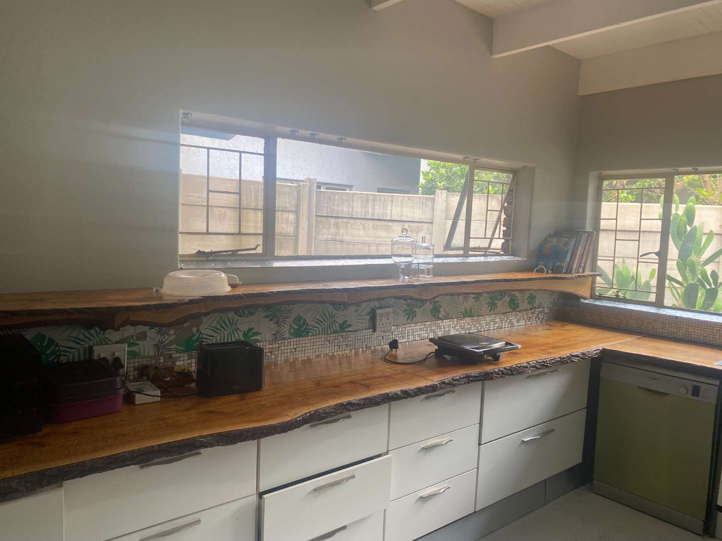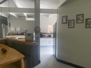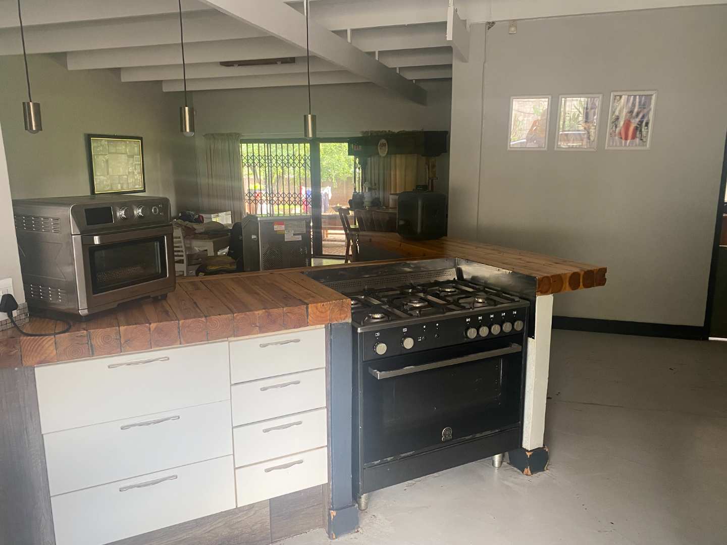 A rustic farm style feel to the kitchen and living area. The kitchen fitted with wooden work tops, a gas stove and walk in pantry.