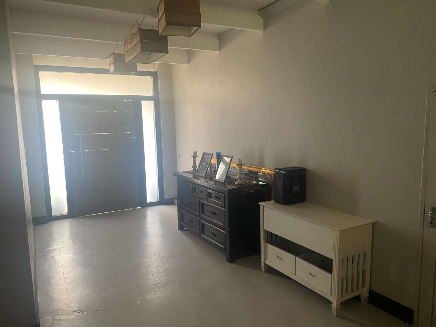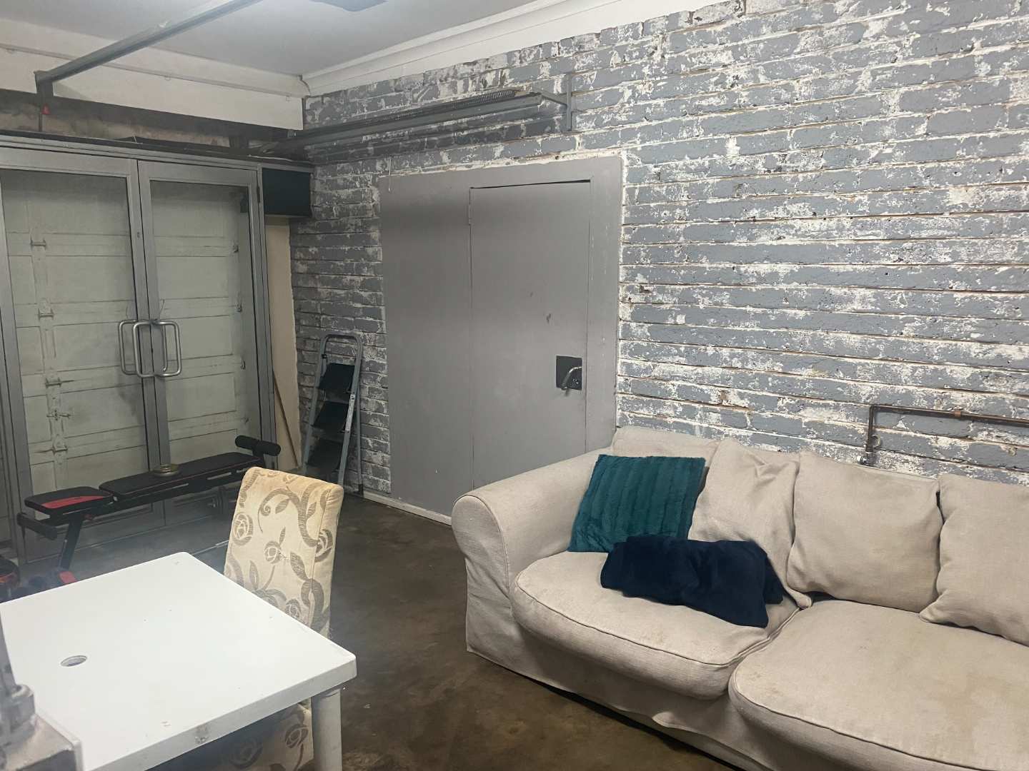 One side of the garage is converted to an area that can be used as office space or additional bedroom.