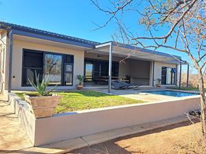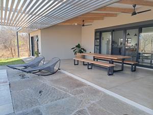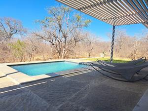 The spacious bedrooms are designed with comfort and elegance in mind, offering ample natural light and high ceilings - all bedrooms are equipped with air-conditioners and ceiling fans. The master suite boasts a luxurious full en-suite bathroom with an inside and outside shower. The bedroom has sliding doors opening up onto the garden, the spacious roof-covered patio and the sparkling pool, overlooking the bushveld - a private oasis for relaxation.